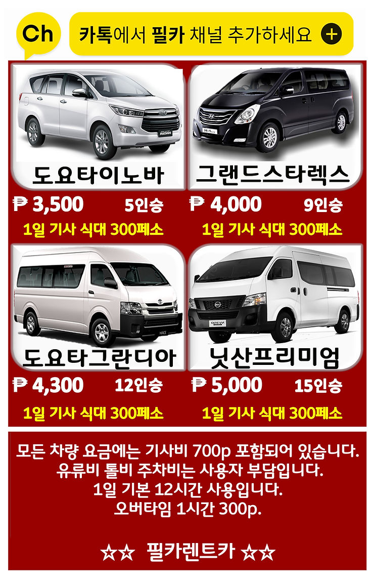 필리핀에서 렌트카 필요할 때 카톡에서